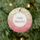 Pink Watercolor Gold Leopard Ceramic Ornament