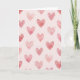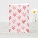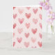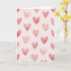 This greeting card shows a soft watercolor-style pattern of hearts scattered across a pale pink background. The hearts come in many shades of pink, from light blush to deeper rose and coral, with slightly blurred edges that make them feel gentle and warm. Each heart looks a little different, with color pooling in spots as if the paint is still drying. The hearts are spread all over like confetti, giving the whole card a sweet, romantic feel without being too busy. There isn’t any visible text on the front, so the heart pattern is the main focus from top to bottom. The overall look is calm, affectionate, and easy to give to a partner or a close friend 💕❤️