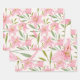 Pink Watercolor Lily Flowers Botanical Wrapping Paper Sheets