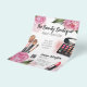 Pink Floral Watercolor Makeup Artist Flyer. Bursting with vibrant hues and whimsical blooms, this print is a visual feast perfect for makeup artists, beauty bloggers, influencers and anyone seeking a touch of colorful floral elegance with a touch of glam. Featuring bright pink peonies, makeup palette, makeup brushes and lipstick. You can customize all of the text and the QR code - you can also remove the QR if you prefer. Great for booking appointments, cosmetology classes, special events, and more!