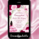 Pink Watercolor Princess Black Hair Quinceanera Invitation