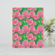 Paper in a pattern of watercolor roses, in shades of deep fuchsia to pastel pink, against a background of green leaves