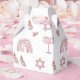 These Pink Watercolor Star of David favor boxes feature a pattern of hearts, rainbows and Star of David.