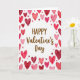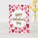 This cute greeting card features a bright white background with the message “HAPPY Valentine’s Day” centered in the middle. The words “HAPPY” and “Day” are shown in warm brown block letters, while “Valentine’s” is written in a flowing script that adds a gentle touch between them. Framing the message is a border of watercolor hearts in different sizes, creating a full and inviting look. The hearts range from deep red to soft pink, with visible brush strokes and slightly uneven edges that give them a hand-painted feel. The open space in the center keeps the message easy to read and draws attention to the heart frame. The card feels warm and caring, making it a lovely choice for a partner, close friend, or anyone you want to surprise with Valentine’s Day wishes ❤️💌🍫.