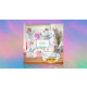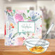 On front: Romantic, bohemian, boho style. Soft, feminine watercolored flowers in pink, green and peach colors with green foliage on a white background.