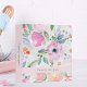 On front: Romantic, bohemian, boho style. Soft, feminine watercolored flowers in pink, green and peach colors with green foliage on a white background.