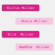 Name labels for school camp daycare in cute hot pink.