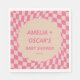Pink Wavy Checker Couples Baby Shower Names Napkins