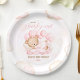 Cute Paper Plates for girl baby shower. The soft pastel pink, ivory and beige colors with a cute sleeping baby bear girl on the clouds with the balloons is so adorable for a baby girl's baby shower. Easily personalize the text. Great for a lovely girl baby shower party all year round. :) - Kate Eden Art