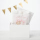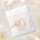 Cute Favor Bags for girl baby shower. The soft pastel pink, ivory and beige colors with a cute sleeping baby bear girl on the clouds with the balloons is so adorable for a baby girl's baby shower. Easily personalize the text. Great for a lovely girl baby shower party all year round. - Kate Eden Art