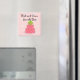 It was a bit smaller than expected, but I was too excited to check dimensions. The product itself send well printed though the grey text is a bit paint. Magnet worked perfectly on my fridge.
