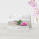 pink wedding roses on beach with torn edge border card