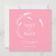 Announce your engagement with these pink wedding save the date templates. This design features line art in with a mix of classic and script typography in white over a pink background. All the colors can be customized to suite your wedding color scheme. Use the template fields to personalize with your name and wedding date. Order printed cards or a digital save the date download. To see the matching wedding stationery suite visit www.zazzle.com/dotellabelle