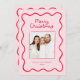 Pink Whimsical Doodle Wavy Frame Christmas Photo Holiday Card