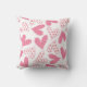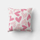 Pink Whimsical Floral Hearts Pattern Throw Pillow