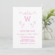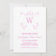 Modern and simple Whimsical Flourish Monogram Save the Date Invitation featuring an elegant swirl motif in pink. Easy to customize, simply add your initial and wedding details in the text fields provided. Click "Customize It" to find more personalization options.