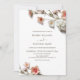 This contemporary minimalist wedding invitation features apricot pink white 3 dimensional wildflowers on a white gray background. With a scannable qr code for your wedding website on the backside.