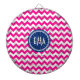 Pink White And Blue Monogram Chevron Pattern Dartboard