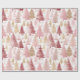 Pink White and Gold Brush Christmas Tree Pattern Wrapping Paper