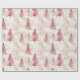 Pink White and Gold Brush Christmas Tree Pattern Wrapping Paper