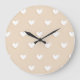 Pink White Beige Cute Simple Heart Pattern Large Clock