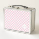 Pink & White Check Pattern Monogram Initials Metal Lunch Box