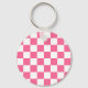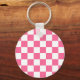 Pink White Checkered Check Pattern Keychain