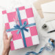 Pink White Checkered Check Pattern Wrapping Paper