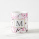pink white cherry blossom initial customizable mug. A pretty delicate flower china pattern mug look on trend yet timeless in modern homes and country kitchens.