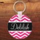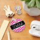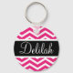 Customise this vibrant pink and white chevron pattern and classic black text banner with the name of your choice.