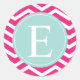 Pink White Chevron Mint Teal Monogram Classic Round Sticker