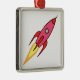 Pink & White Cute Retro Rocketship Cartoon Design Metal Ornament