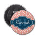 Pink White Dotted Pattern Navy Monogram Bottle Opener