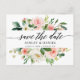 Modern Calligraphy Script. Elegant Watercolor Pink Blush Floral Greenery Wedding Save The Date Postcard includes pink white roses and other beautiful greenery.