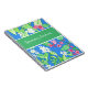 A very pretty, customizable spiral notebook, with a pattern of creamy white Mock Orange and bright pink Weigelia on a sky blue background and a soft green panel for your name or the title of the notebook, from a handpainted watercolour design by Judy Adamson. Would also make an excellent journal.