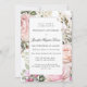 A beautiful first death anniversary invitation features blush pink roses and white hydrangea flowers decorating an elegant frame. Formal text is used to create a reverent tone in keeping with the first death anniversary of a mother or daughter.
