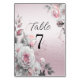 Beautiful Pink White Floral Table Number