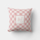Pink White Gingham Plaid Modern Chic Monogram Throw Pillow