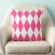 Pink White Harlequin Diamonds Checkers Design Throw Pillow