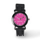 A pink background and large white numbers decorate the face of this kids watch. What a great Christmas or Birthday gift for a child! It can be personalized with child's name, or example text can be deleted. Strap is silver glitter, but is available in other colors. All Rights Reserved © 2014 Marcia Socolik.