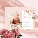Pink | White Peony Blooms Girl Baby Photo Baptism Invitation