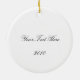 Lightweight, smooth, pure white ornament with nice sheen. Perfect size to be seen from across the room ... and to attract closer inspection! Price was great for ordering enough for the whole family! Clear, bold black design just as requested. Matches the order exactly. Just so nice!