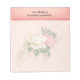 A notepad with a floral rose bouquet with white and pink flowers. Background is pink with a floral pattern. Pretty and elegant design.