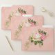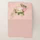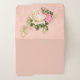 Folder trio with a floral rose bouquet with white and pink flowers. Background is pink with a floral pattern. Pretty and elegant design.