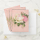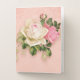 Pocket folders, set of five with a floral rose bouquet with white and pink flowers. Background is pink with a floral pattern. Pretty and elegant design.