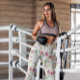 The dainty interlinked rosette design at the waist is truly unique. The poly-spandex makes for a nice fit and available in sizes 0-16. The printing is vibrant and eye-catching.