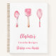 A white colored background with pink kitchen utensils. Personalize and add your name and a text.
