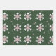 Pink White Snowflakes Green Wrapping Paper Sheets