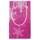 Pink White Snowflakes Minimalist Christmas Small Gift Bag