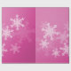 Lovely, modern, and trendy festive wrapping paper featuring a pink background adorned with delicate white snowflakes. The snowflakes, detailed with fine lines, create an intricate lace-like effect, covering the entire surface of the paper. The overall style is charming and joyful, with a clear holiday theme that adds an extra touch of cheer to any gift. Perfect for wrapping Christmas presents for your loved ones, this design combines elegance and festive spirit, making it an ideal choice for creating a memorable gift presentation during the holiday season.